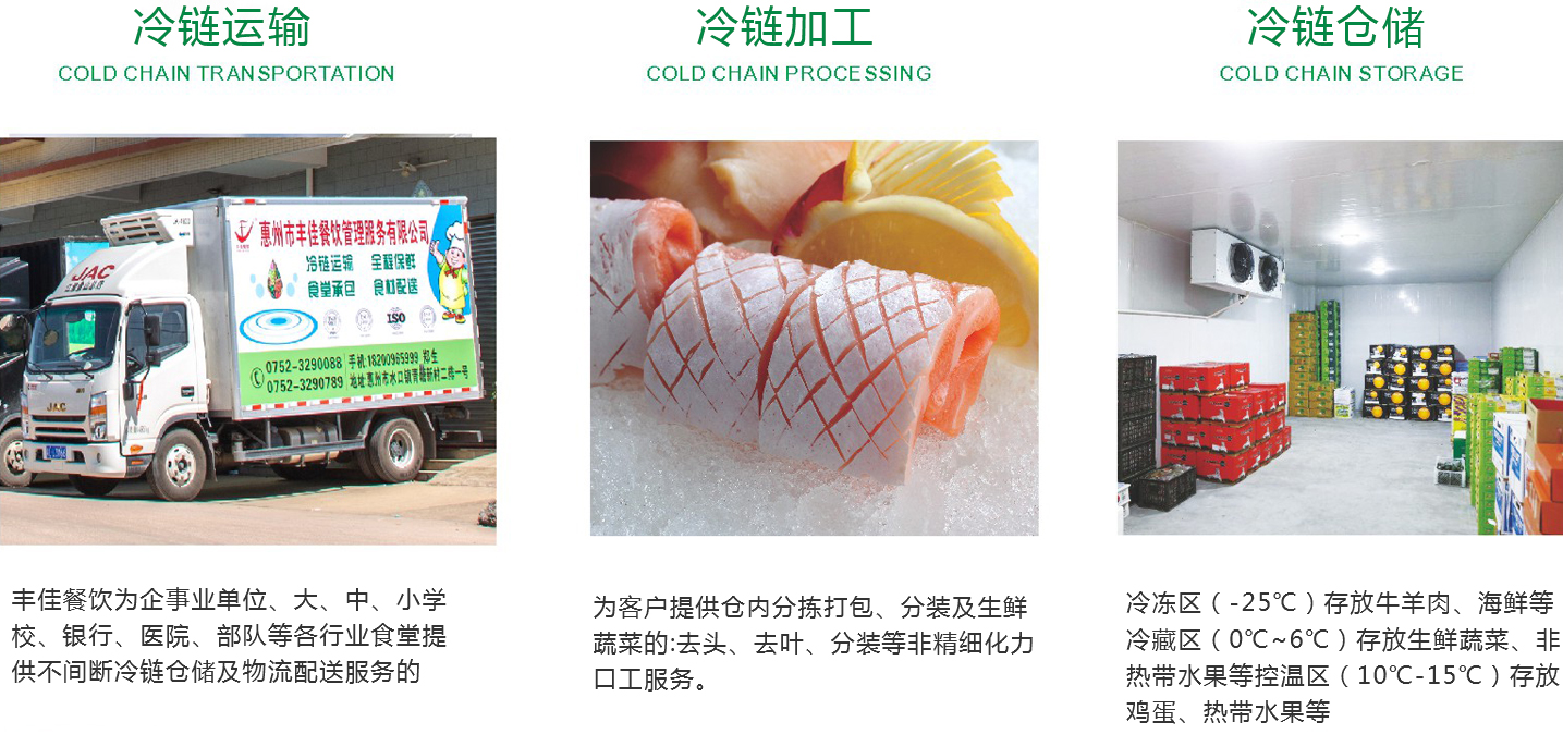 青菜、瓜果類從收割到客戶驗收不超過6小時;豬肉、牛肉、三鳥類位于肉類專區(qū),設(shè)立專用通道,從分配到交貨不超過4小時;干貨、調(diào)料收獲日期不超過生產(chǎn)日期的45天。肉類凍品、面食速凍食品、海產(chǎn)品速凍食品分區(qū)存放,溫度在一25℃以下。車間每天清洗消毒,倉庫,凍庫每周清洗消毒。